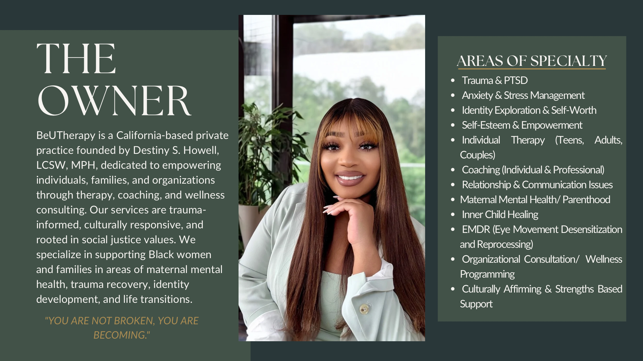 At BeUTherapy, we provide trauma-informed therapy, maternal mental health support, EMDR trauma therapy, and family counseling in California. Our mission is to create a safe, restorative space where you feel seen, supported, and empowered.